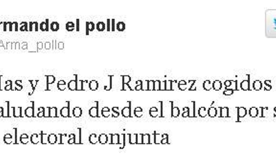 Pero cuando ya la noche parecía acabada y todos parecían haber ganado, llega Pedro J. Ramírez, (cuyo periódico fue el responsable de que salieran a la luz antes de las elecciones los famosos borradores que afirmaban que Mas y Pujol tenían cuentas en Suiza), y nos informa de quién ha ganado realmente las elecciones: