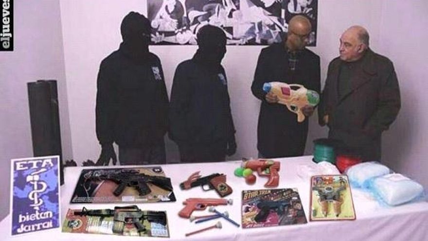 De manera que hemos pasado de escudriñar hasta los silencios de los matarifes a que la gente se parta la caja de la risa con los del pistolón y haga de su entrega de armas -la puntita nada más, simulada, diferida-, una viñeta chistosa, con ventosas, pistolas y metralletas de plástico. Hemos pasado de estupefactos, a estupefacientes. Los del pistolón nos confirman ahora, de nuevo, que siempre han sido un fin en sí mismos, que eso de que estaban al servicio del pueblo era pura retórica para hacerse necesarios. Vean: “se mantendrán las estructuras necesarias para garantizar el funcionamiento interno”, dicen también en su último comunicado.