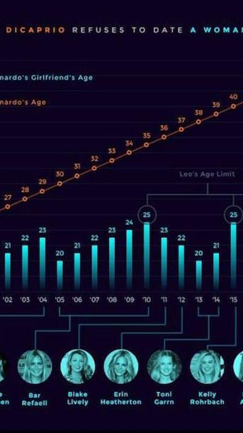 No hay nada de malo en que las mujeres se sientan atraídas por hombres mayores. Ni en que Leonardo DiCaprio les siga resultando deseable a chavalas que posiblemente compitan en patrimonio con el niño mimado de los 90. El problema es que una aplicación de citas democrática haga que la anécdota que hoy inspira una infografía graciosa sea la norma y que cualquier pelagatos (ahora sí) pueda tener ínfulas de Leonardo DiCaprio.