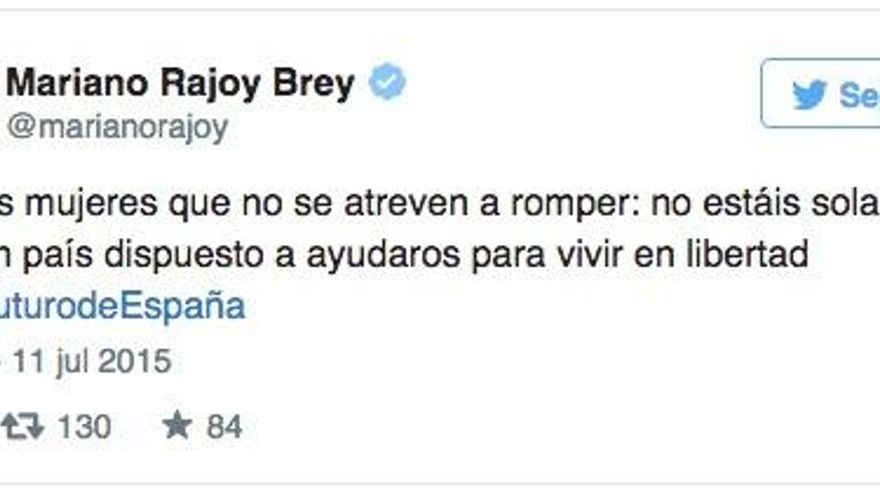 El machismo es un problema político, además de cultural, y nos afecta a todas; incluso hasta la que esté leyendo estas líneas meneando la cabeza. Por eso, todas deberíamos tener en cuenta cuáles son las políticas de igualdad que programa y aplica el partido al que tenemos pensado votar. Y sin ningún género de dudas, debería ser imperdonable para cada mujer de este país, que mientras este Gobierno recorta en un 37% el presupuesto de políticas para promocionar la igualdad, el presidente del mismo tuitea esto cuando un hombre quema viva a su pareja en su lugar de trabajo: