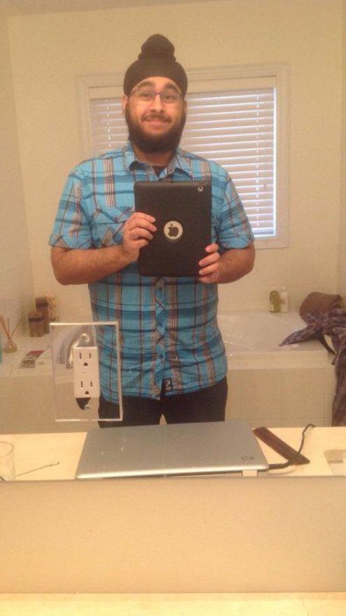La realidad es que hay un señor en Canadá llamado Veerender Jubbal, que figura como periodista y escritor freelancer en su perfil de Twitter y dedicado a la crítica de Juegos de Internet. Colgó en esta red social un selfie, realizado en su cuarto de baño, con un iPad.