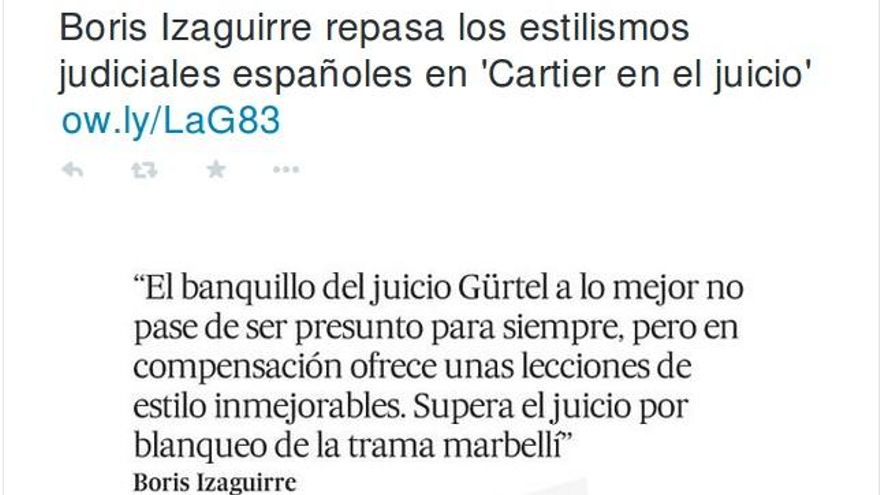 Periodismo de calidad sobre tribunales en El País según apreciamos en este tuit del 3 de abril.