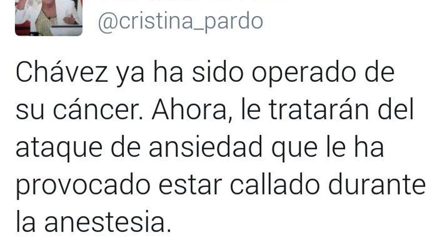 Fue noticia e indignación la burla de algunos tuits tras la muerte de Bimba Bosé (“La Fiscalía investigará los tuits ofensivos sobre la muerte de Bimba Bosé”, eldiario.es, 25 de enero). Pero no ha sido el primer caso de tuits ofensivos tras la muerte de alguien por cáncer. Pero es que con Chávez sí valía.