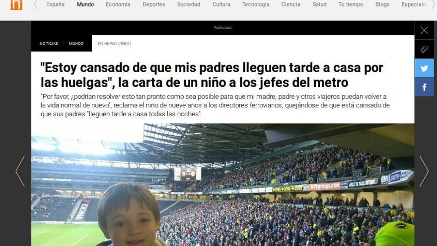 ¿Para qué explicar la huelga del metro de Londres? Basta con que sepamos que ese pobre niño sufre la tardanza de sus padres por culpa de los huelguistas. ¿Cómo no darle la razón? (Antena3, 10 de enero).