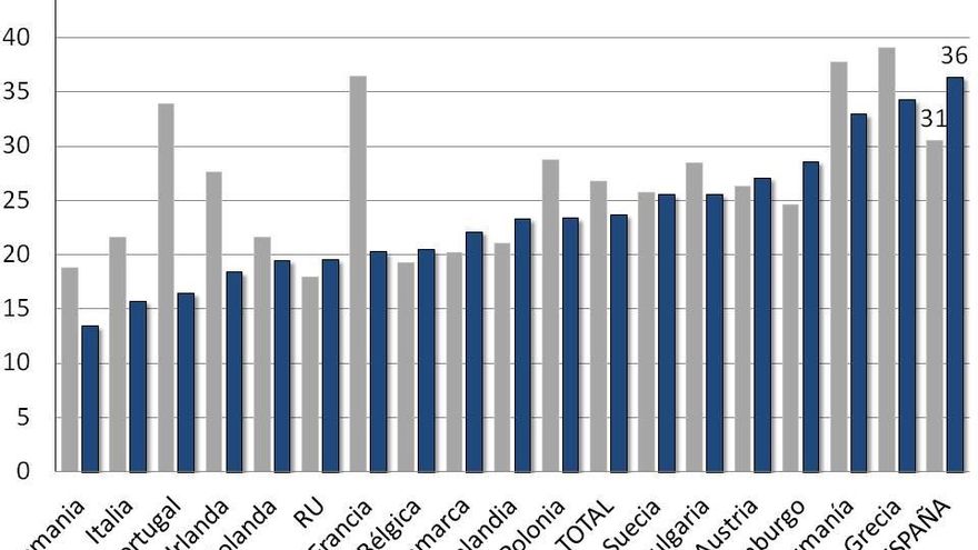 Entre los europeos con estudios superiores de 30 a 35 años, los españoles son los que tienen mayor disposición a trasladarse a otro país para trabajar por un período largo de tiempo. Nuestro Ministro de Educación sostiene que esto nunca puede considerarse un fenómeno negativo, y nuestra Secretaria General de Inmigración y Emigración afirma que se debe no solo a la crisis económica sino también al impulso aventurero de la juventud. Y diciendo estas cosas solo consiguen que muchos más queramos marcharnos, incluso sin ser jóvenes.