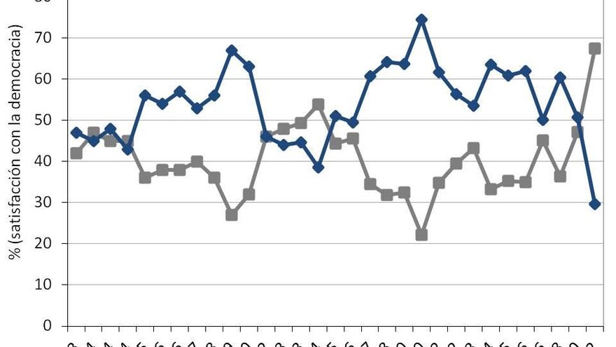 2012 será recordado como un año en el que se han batido muchos récords negativos en el ámbito económico, político y social. Entre esos récords está el de insatisfacción de la ciudadanía con el funcionamiento del sistema democrático. De acuerdo con los datos del CIS, en noviembre de 2012 un 67,5% de los ciudadanos se mostraba poco o nada satisfecho con la forma en que funciona la democracia en España, frente a un 29,6% que se sentía muy o bastante satisfecho. Desde que hay registros, la cifra de insatisfacción democrática nunca había sido tan elevada y la de satisfacción nunca había sido tan baja.