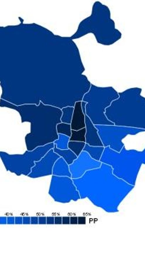 Fig. 2: Porcentaje de voto al Partido Popular (PP) en las elecciones municipales de 2011 por distritos en el Ayuntamiento de Madrid