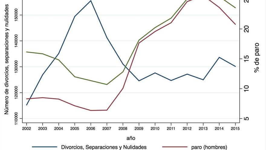 Este conjunto de explicaciones no es ni pretende ser exhaustivo. El lector puede encontrar abundante literatura sobre esta cuestión. Por otro lado, como es habitual en casi cualquier tipo de ejercicio empírico en ciencias sociales, identificar cuál de los mecanismos causales propuestos por las diferentes teorías es el que prima no es una tarea sencilla. Aun más en este caso, cuando seguramente las variables con las que podría medirse la interdependencia económica, las dificultades financieras y las interpretaciones de género estén estrechamente relacionadas. En su estudio, Killewald avanza las fronteras de la literatura empleando nuevas formas de poner a pruebas estas teorías y encuentra que las circunstancias económicas del matrimonio no son determinantes a la hora de explicar los divorcios. Más bien, encuentra apoyo empírico para lo anunciado por la perspectiva institucional del género: manteniendo controlados los potenciales efectos de dependencia y financiero, existe una asociación positiva entre el aumento del desempleo (involuntario) a tiempo completo de los hombres y el riesgo de divorcio. Es decir, la figura de hombre ‘sostén de la familia’ sigue jugando un papel relevante para explicar la estabilidad matrimonial.