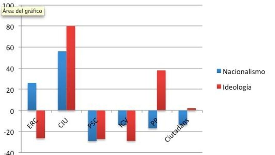 Entonces, ¿cómo puede explicarse la polarización parlamentaria si la sociedad no se ha polarizado? Una hipótesis apuntada hace unas semanas por Lluís Orriols es que a la hora de que los ciudadanos catalanes decidan su voto la ideología ha pasado a un segundo plano frente a la cuestión territorial.