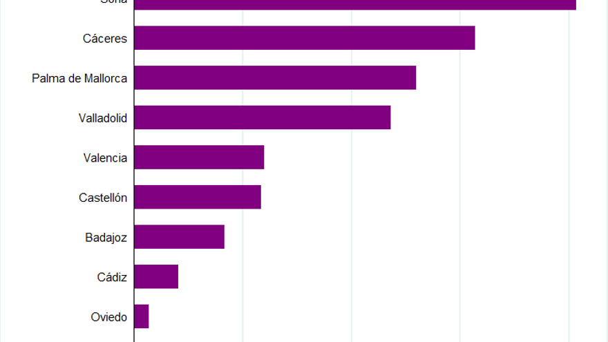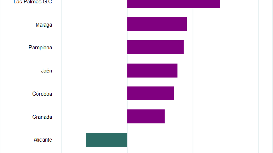 En este grupo de ciudades el resultado de la marca Podemos en las autonómicas fue mejor que el de las candidaturas ciudadanas de confluencia pero no unidad. Solo con la excepción de Alicante. En las Palmas de Gran Canaria el diferencial llega a ser mayor de 7 puntos porcentuales. En el resto no pasan la barrera del 5%. A pesar de todo, estamos ante escenarios en donde las candidaturas de confluencia apoyadas por Podemos han quedado muy igualadas a los resultados de la marca Podemos.