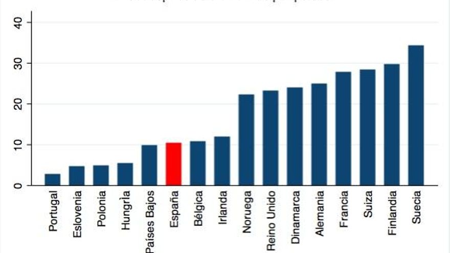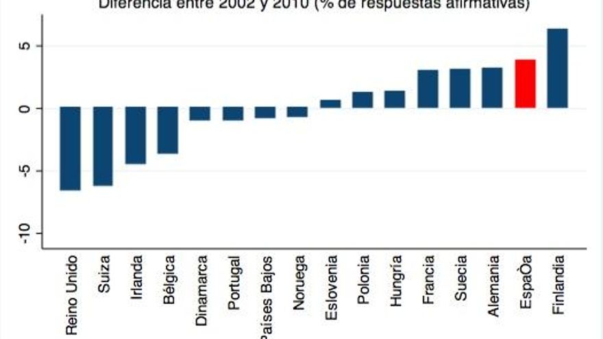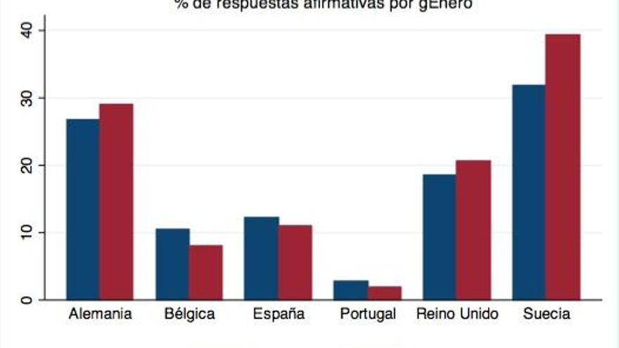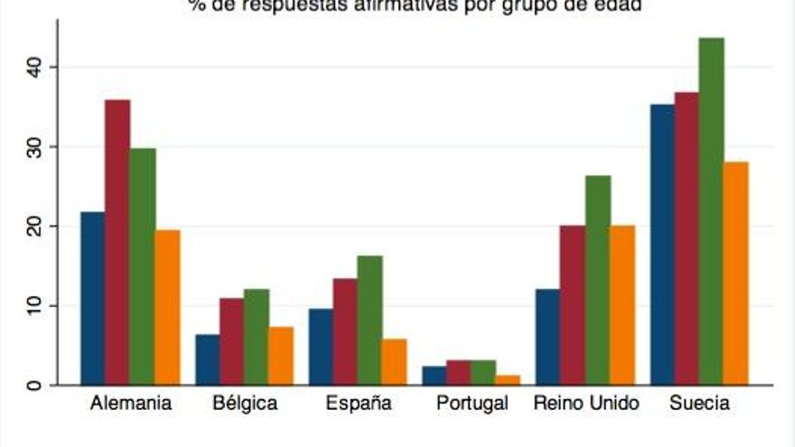 El tipo de respuesta que se recoge es simplemente afirmativa o negativa. Veamos en qué posición esta España en relación a otros países europeos.