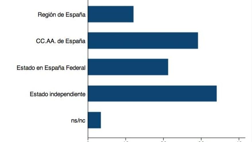 Si bien el aumento de las posiciones más favorables al independentismo ha sido generalizado, el porcentaje de partidarios del centralismo (o de una menor autonomía para Cataluña) se ha visto prácticamente inalterado o incluso ha decrecido ligeramente. Esta estabilidad contrasta con el notable aumento del centralismo en el resto de España, donde -según algunas encuestas- la preferencia por una reducción del poder autonómico ya es mayoritario. Así, en Cataluña los ciudadanos no se han desplazado hacia posiciones más extremas (unos hacia el centralismo y otros hacia el independentismo) sino que más bien se ha producido un desplazamiento en bloque de la opinión pública hacia tesis más pro- autonomistas y sobiranistas.