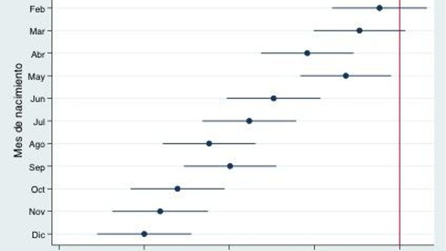 El logro educativo es el resultado de múltiples factores, algunos de los cuales pasan generalmente inadvertidos. Más allá de determinar el signo del zodiaco, el mes de nacimiento suele verse como un accidente biográfico sin apenas consecuencias sobre nuestras oportunidades. Sin embargo, durante la etapa preescolar y la primaria, el momento en que nacen los niños da cierta forma a sus resultados escolares. En España, los niños nacidos cada mes de diciembre son irremediablemente los más jóvenes de sus clases, mientras que los de enero están en la situación opuesta. Nacer en la primera parte del año da más músculo tanto académico como no académico. Además de tener un mejor rendimiento medio, los primeros niños de cada año parecen sufrir menos bullying, son menos absentistas, más ambiciosos y seguros de sí mismos. De alguna forma, esta desigualdad es inevitable. En algún punto del calendario hay que marcar la frontera entre un curso y otro.
