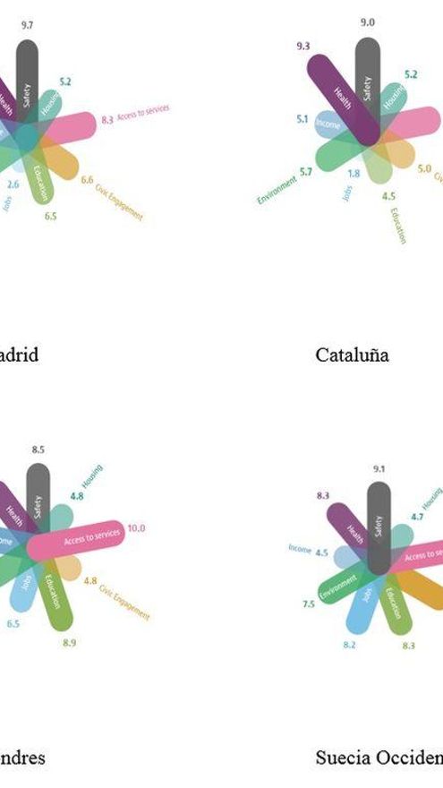 ¿Cómo podemos saber si Lo Público en España funciona bien o mal? ¿Semos o no semos Europeos? Una respuesta rápida es que es muy difícil saberlo. Los numerosos indicadores construidos por organismos internacionales, como los del Banco Mundial o los de International Country Risk Guide, son útiles y deberían inspirarnos. Pero, posiblemente son simplificaciones demasiado crudas de todo lo que hacen las administraciones públicas de un país. Nos suelen dar un solo dato, un número-resumen de la posición de nuestras instituciones en el mundo. Recientemente, la OCDE ha puesto en marcha una iniciativa que permite una visión más desagregada, tanto a nivel territorial – con datos a nivel de regiones y no sólo de países – como a nivel de esfera de intervención – distinguiendo entre, por ejemplo, educación, sanidad o seguridad. Es el llamado (de forma algo pretenciosa quizás) el OECD Regional Well-Being: A Closer Measure of Life, que mide el bienestar de los ciudadanos en 362 regiones de la OCDE en nueve aspectos: ingresos, trabajo, salud, acceso a servicios, medio ambiente, educación, seguridad, compromiso cívico y vivienda.
