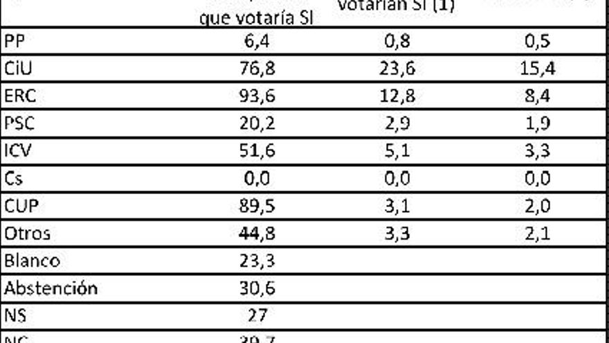 (1) Porcentaje en el electorado de 2012 multiplicado por su propensión a votar SI