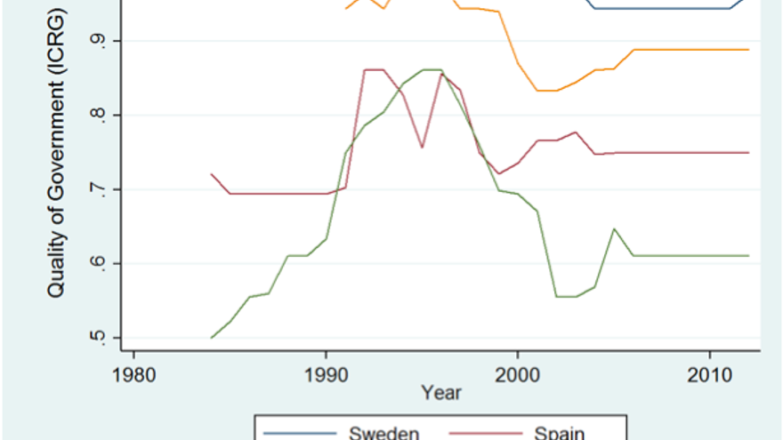 Gráfico 1. Evolución del indicador de Calidad de Gobierno del International Country Risk Guide