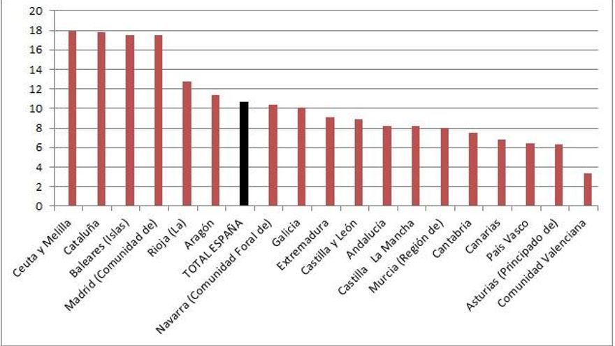 Gráfico 1. Porcentaje de hogares que emplean servicio doméstico por comunidades autónomas