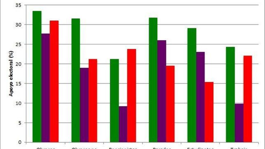 Gráfico 3: Relación entre condición socioeconómica y apoyo electoral (I)
