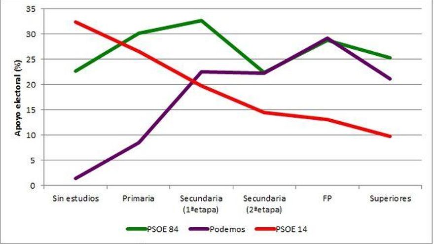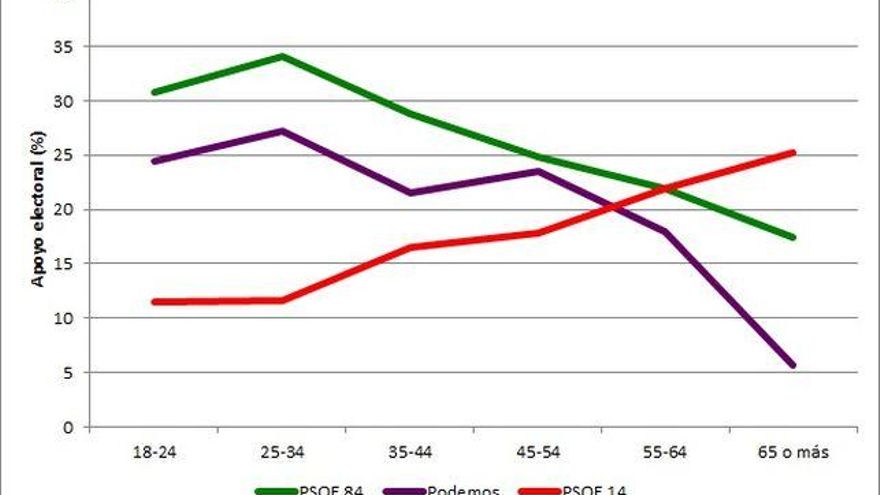 Con todo lo anterior, creo que no es descabellado trazar una similitud, aunque con obvios matices, entre el PSOE de los 80 y Podemos. Este paralelismo es una buena radiografía de lo que está ocurriendo. En primer lugar, tanto en los 80 como en la actualidad un sector muy importante de votantes jóvenes no se identifica con los viejos partidos y busca opciones nuevas. En segundo lugar, el apoyo de entonces al PSOE o el de ahora a Podemos viene en gran medida espoleado por votantes de estudios altos y una condición económica no necesariamente desfavorecida, lo cual refleja que los desencantados por la crisis no son solo los votantes que económicamente están peor. No obstante, el panorama que he mostrado es obviamente una simplificación y un retrato provisional. Podemos es un nuevo actor político y el mapa de sus apoyos todavía se está dibujando. Solo el tiempo dirá si los consigue consolidar para obtener los éxitos electorales que obtuvo el PSOE en los 80.