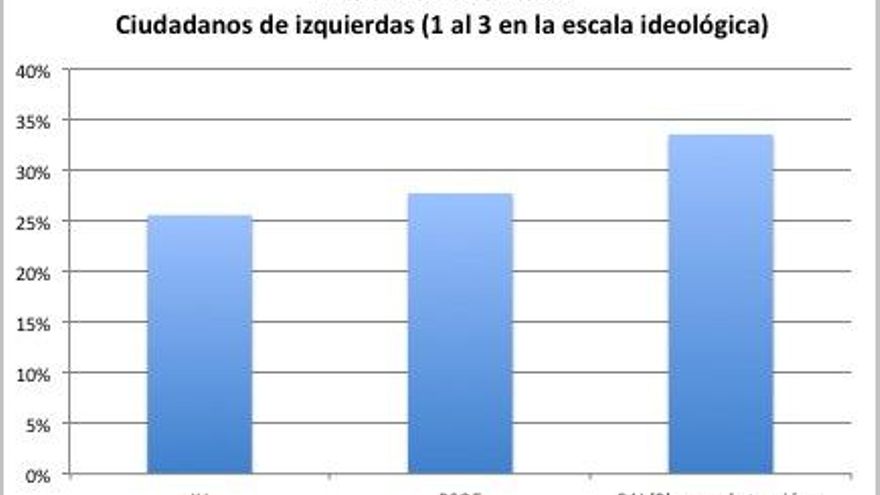Sin datos demoscópicos en los que se pregunte directamente por la intención de voto a Podemos es muy difícil dar una respuesta a estos interrogantes. En cualquier caso, analizando el último barómetro del CIS disponible (octubre 2013), podemos arrojar algunas claves sobre el espacio electoral en que Podemos se movería y cuál sería la capacidad de éxito de una iniciativa de este estilo entre la izquierda española.
