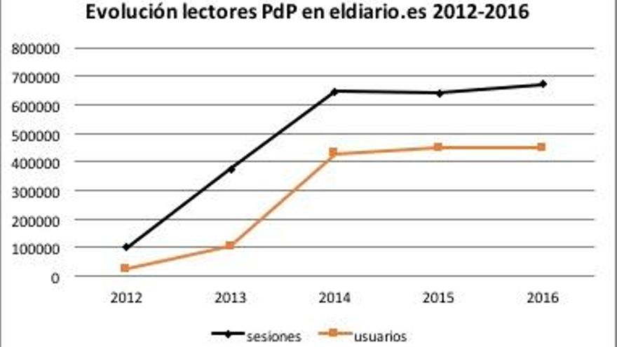 Gráfico 2. Lectores de Piedras de Papel en eldiario.es