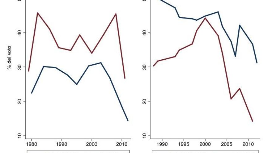 Desde luego, un posible reparo radicaría en si el PSC podría afrontar unas autonómicas sin el sustento de los socialistas españoles, ya que buena parte de sus votantes se identifican con el PSOE más que con el PSC. El gráfico 1 muestra que los liberales quebequeses han logrado buenos resultados sin el apoyo de sus colegas canadienses: en sus elecciones provinciales suelen lograr entre 12% y 18% más de lo que consiguen sus colegas en las federales. Desde luego, esto no demuestra que el PSC pudiese conseguir lo mismo, pero descarta que esta forma de articulación debilite, por si misma, al partido periférico. Sobre todo porque, con el apoyo del PSOE, el PSC no solo no ha logrado más voto en las elecciones autonómicas, sino aproximadamente un 10% menos (véase gráfico 1).