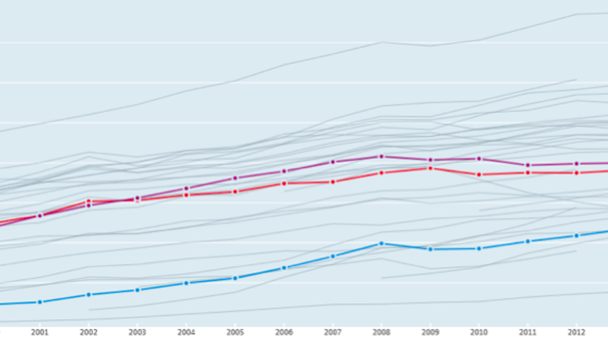 En la retórica dominante, unos opinan que España está saliendo bien de la crisis y otros que España (o la manida etiqueta de las “clases medias”, ese grupo tan moldeable del que todos nos podemos sentir parte) está sufriendo. Ambos tienen parte de razón. A unos españoles la crisis les ha sentado muy bien. El gráfico 1 nos enseña que España ha entrado el selecto grupo de naciones de la OCDE más desigual que el Reino Unido – midiendo en este caso la desigualdad por la ratio de renta en manos del 10 por ciento más rico en comparación con el 10 por ciento más pobre – .