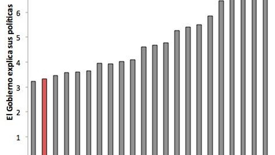 Estos datos, por tanto, apuntan a que el problema fundamental de la democracia española, más allá de las instituciones, es la crisis del vínculo representativo. El lema del “no nos representan” manifiesta un sentimiento muy extendido en el conjunto de la población. Alguien puede argumentar que la representación no implica necesariamente que el representante haga siempre lo que el representado desea. Podemos defender que el político, dado su mejor conocimiento de las circunstancias a las que el país se enfrenta, debe poder optar por políticas distintas a las que los ciudadanos le demandan si considera que estas son necesarias para el país. Este es un debate muy interesante. Aún defendiendo esta postura, lo que sí me parece es que el mandato representativo solo puede sustentarse en una relación transparente entre el político y el ciudadano. El ciudadano debe tener la confianza de que si el político se desvía de la voluntad popular, ha de ser capaz de persuadirle de por qué lo hace y rendir cuentas por ello. Este requisito de la representación está lejano de ocurrir en España. Solo por detrás de Bulgaria, los españoles son los ciudadanos europeos que más perciben que su gobierno no explica las políticas que adopta. Sin la rendición de cuentas, el margen de maniobra del mandato representativo se ve muy mermado.