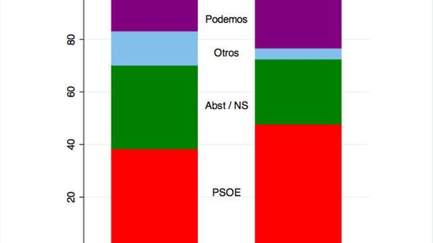 ¿Cómo es posible que Podemos crezca especialmente atrayendo a exvotantes socialistas, y que simultáneamente el PSOE mejore resultados en el último Barómetro del CIS?