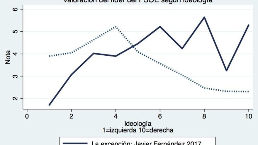 Muchos medios de comunicación han destacado que, según el CIS, Javier Fernández es el líder de ámbito nacional mejor valorado por los españoles. No hay duda de que se trata de un titular impactante, especialmente si tenemos en cuenta la profunda crisis de interna que sufre el PSOE tras la caida del secretario general Pedro Sánchez en octubre del año pasado. Sin embargo, se trata de un dato que, si no se analiza de forma adecuada, puede llevar a confusiones importantes. El problema es que no tiene mucho sentido fijarse en la valoración de los líderes entre la totalidad de los votantes, pues de poco sirve si un candidato es muy atractivo entre ese electorado que jamás le votaría. Lo importante para un líder político es tener capacidad de seducir a ese electorado que simpatiza con su partido y que tiene opciones reales de acabar votándole. Es por este motivo que muchos analistas suelen equivocarse al infravalorar a Mariano Rajoy como candidato. Si nos centramos en las valoraciones de los simpatizantes de cada partido, Rajoy es el que goza de una mayor popularidad. El líder del PP obtiene una nota de 6,7 entre su electorado, Pablo Iglesias consigue 6,3 entre sus propios votantes y Albert Rivera una nota de 6,2 entre los suyos. En cambio Javier Fernández de apenas alcanza el 5,1 entre el electorado socialista. No hay duda que en términos comparados, el presidente de la gestora no parece un líder particularmente atractivo entre quienes votaron al PSOE en junio de 2016.