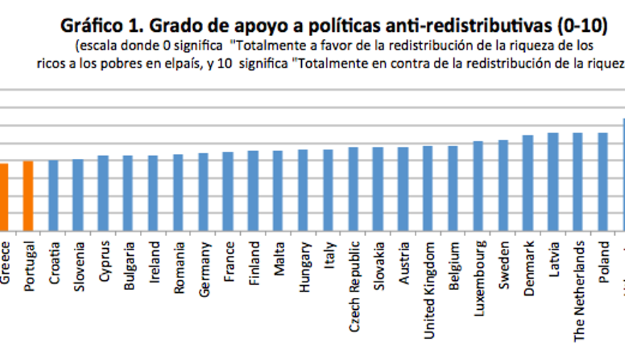 El vínculo sureño no da para mucho más. Los ciudadanos de Grecia, España y Portugal muestran actitudes distintas respecto al papel del Estado en la economía (los más pro-Estado somos los españoles), la relación entre los impuestos y los servicios públicos (España es el más favorable de los tres a un aumento de impuestos para incrementar los servicios públicos), por no hablar de cuestiones morales, en las que la sociedad española es de las más progresistas de Europa (por ejemplo, en el apoyo al matrimonio entre personas del mismo sexo)[1].