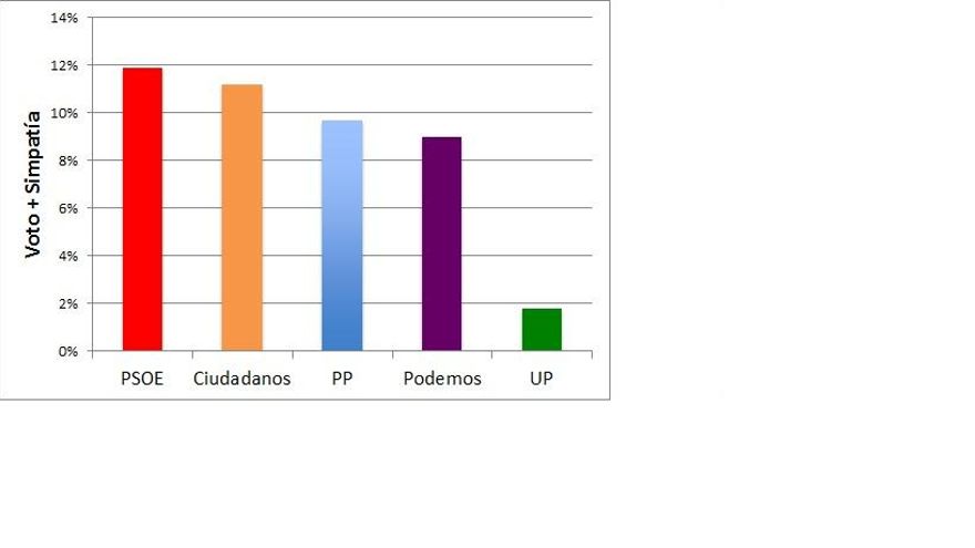 Esta pregunta no siempre es fácil de responder por el alto nivel de sobreestimación de la participación en las encuestas. A los ciudadanos nos cuesta reconocer que no votamos y cuando miramos los números siempre encontramos que hay más gente que dice haber votado en las pasadas elecciones que la que efectivamente lo ha hecho. Con esta advertencia en mente, y utilizando de nuevo la categoría Voto+Simpatía como aproximación, el barómetro preelectoral del CIS, obtenemos un resultado, a mi juicio, sorprendente. Uno esperaría que los que no votaron en 2011 fueran más propensos a votar o mostrar simpatía por cualquiera de las opciones políticas nuevas. En cambio, la opción preferida por este grupo de electores es el PSOE. Esto muestra que votantes probablemente desencantados con el PSOE en 2011 podrían volver a apoyarlo el domingo. Ciudadanos queda cerca, en segundo lugar. Es llamativo que Podemos aparezca como la cuarta fuerza, por debajo del PP, entre los abstencionistas de 2011. Durante bastante tiempo Podemos parecía ser el partido que conseguí atraer más votantes desde el abstencionismo. Parecería, a la luz de la encuesta preelectoral, que a medida que nos hemos acercado a las elecciones, otros partidos han conseguido igual movilización de abstencionistas. La tendencia de Ciudadanos ya parecía clara en el barómetro de octubre. No obstante, Podemos muestra una recuperación en las encuestas realizadas después de esa preelectoral y podrían deberse a que ha vuelto a movilizar este voto.
