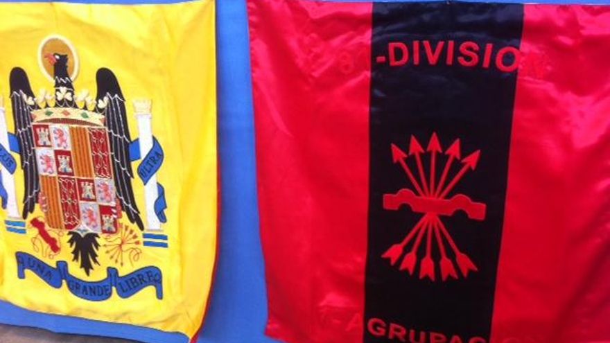 La cautela entre los coleccionistas, centrados en el periodo nazi, no abarca sin embargo lo que tiene que ver con el fascismo español. Multitud del centenar de puestos muestra el yugo y las flechas de la Falange, banderas preconstitucionales, parches, imágenes de Franco y literatura variada sobre el régimen que eluden cualquier tipo de pudor.