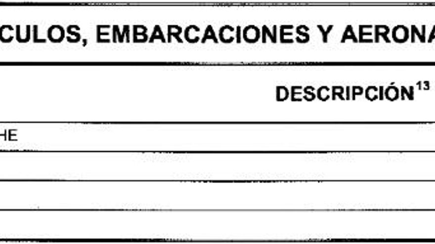 En el apartado referido a los “vehículos, embarcaciones y aeronaves” es donde esta parlamentaria quintaesencia la simplicidad al afirmar poseer un vehículo que responde a la siguiente descripción y características requeridas: “Coche”. Ni cilindrada, ni marca, ni modelo ni otros detalles que sí especifican otros diputados en sus declaraciones. Coche.
