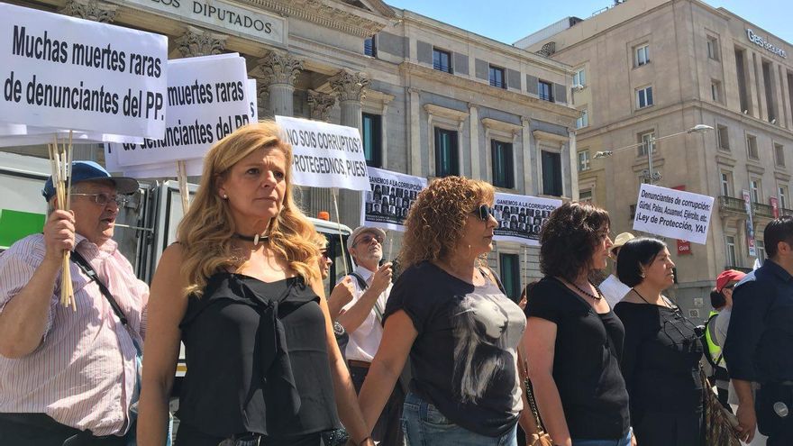 Además de Peralta y Mejías, a la protesta han acudido reconocidos denunciantes como Ana Garrido (Gürtel), Luis Gonzalo Segura (Fuerzas Armadas), Roberto Macías (UGT), Juanjo Romero (Aena), Clara Reinoso (niños robados).