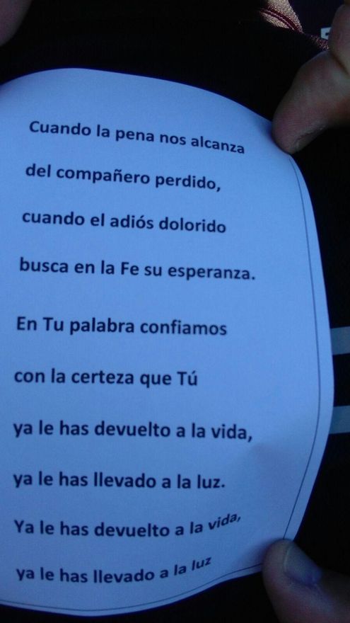 A diferencia de ésta última, La muerte no es el final -que entonan militares y guardias civiles en sus actos- sí tiene letra. “En Tu palabra confiamos/con la certeza de que Tú/ya le has deuelto a la vida, ya le has llevado a la luz”, dice la canción. Ante el escaso éxito en los ensayos, aseguran fuentes policiales, la cuartilla les fue retirada a los alumnos el lunes. En el acto de Ávila cantó, de forma gratuita y por la megafonía, la esposa de un agente, que también entonó, como ha hecho en otros actos del Cuerpo, el pasodoble Banderita española, de exaltación militar.