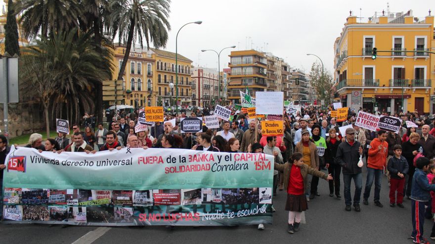 En Sevilla, la manifestación se ha celebrado por la mañana. Unas 6.000 personas han marchado por el centro de la ciudad desde la Alameda de Hércules hasta llegar a la Corrala de Vecinas La Utopía. En este caso, la convocatoria ha servido, además, para mostrar el apoyo ciudadano al movimiento de las corralas, edificios vacíos propiedad de la banca o de grandes inmobiliarias y que han sido ocupados por familias en situación de emergencia social.