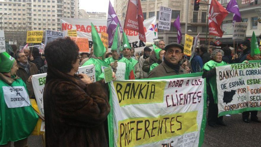 “Yo estoy aquí porque un dinero que teníamos los jubilados se lo dimos a los bancos porque nos dijeron que no tenía penalización y ahora nos lo han quitado. Hemos firmado una cosa que no sabíamos”, dice Eugenia en relación a las preferentes. “Y las subordinadas”, añade Alicia“. ”¡Nos han timado!“, suspiran casi al unísono. ”Eran unos productos que ya estaban tóxicos y nos los encasquetaron a los abuelos“, explica Alicia.