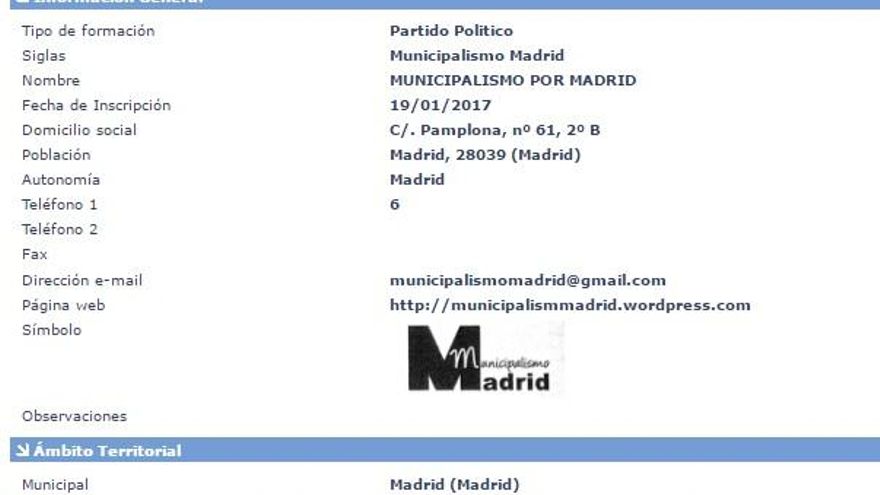 El mismo día fue registrado otro partido: Municipalismo por Madrid.