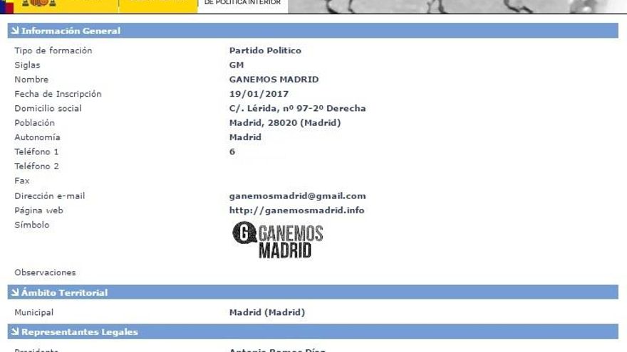 En el registro del partido figura como presidente Antonio Ramos Díaz, quien participó en las primarias de Ahora Madrid en 2015 y que hoy forma parte de la Coordinadora de Ganemos Madrid.