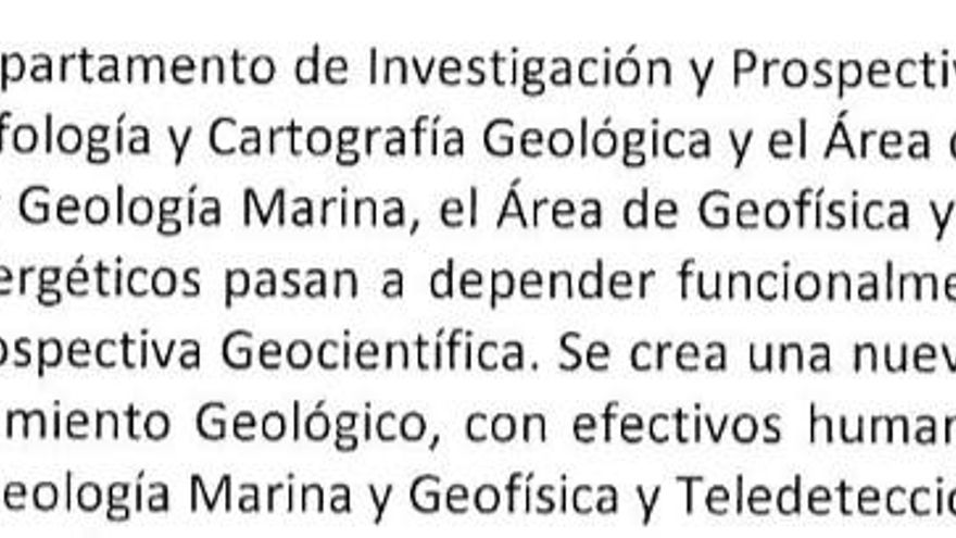 El nuevo cargo del funcionario imputado no ha sido todavía hecho público y el organigrama que figura en la web del organismo no ha sido actualizado. Pero entre sus funciones, tal y como figura en el mismo documento, Rodríguez Fernández tendrá ahora bajo su mando las áreas de Riesgos Geológicos, de Recursos y Geología Marina y la de reciente creación de Geología del Subsuelo y Almacenamiento Geológico.