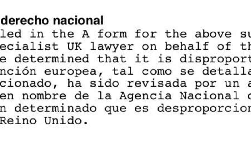 Las autoridades británicas reconocen, igualmente, que en el documento redactado doce horas antes habían rechazado la solicitud del Tribunal Supremo por un motivo erróneo: “En nuestro mensaje anterior nuestra respuesta fue incorrecta al determinar su Orden de Detención como desproporcionada, ya que no es desproporcionada sino que existe una falta de información esencial. Lamentamos este malentendido”.