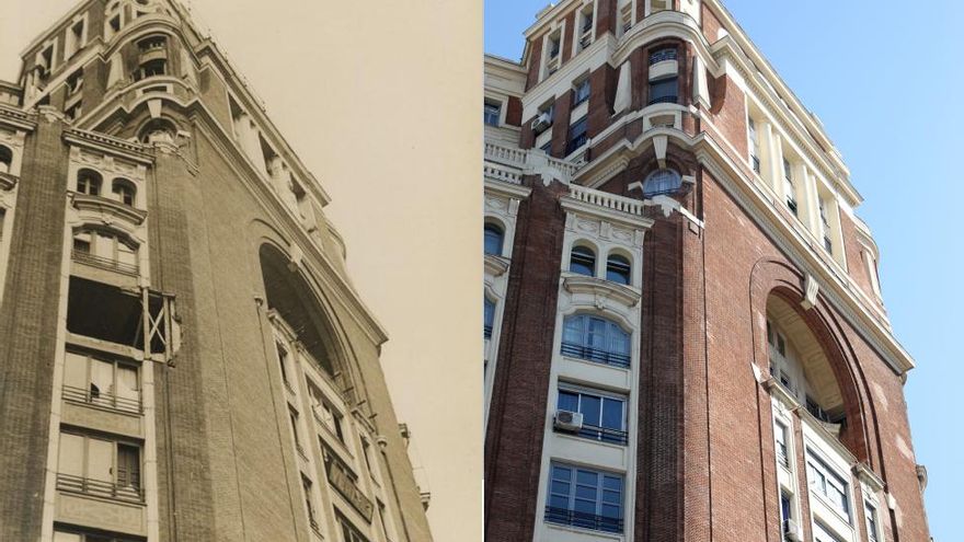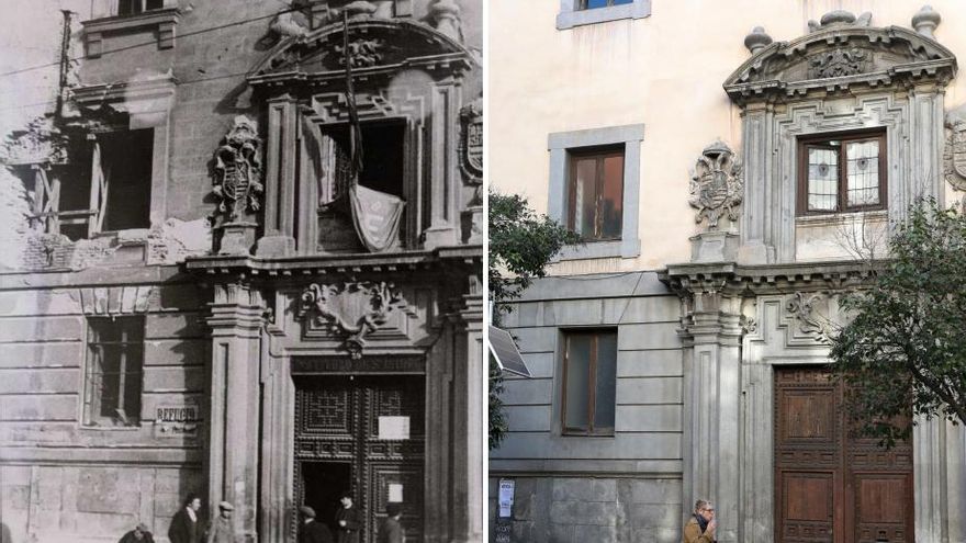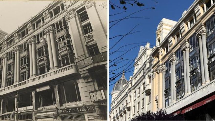 Un número más allá, la fachada del que hoy es el hotel Radisson sí que muestra claras hendiduras, fruto de la metralla.