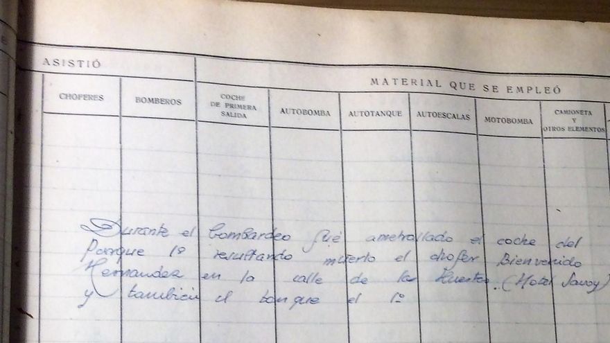 También que “durante el bombardeo, fue ametrallado el coche del parque 1º, resultando muerto el chófer Bienvenido Hernández”.