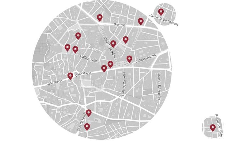 Además de observar edificios restaurados o construidos durante el régimen, pueden detectarse heridas completas o vacíos urbanos: espacios donde antes de la guerra había algo y ahora no. Los profesores tienen fichado uno muy claro: el Pasaje de la Caja de Ahorros, al principio de la calle Alcalá, que antes de la guerra era parte de un edificio y, hoy, una calle.