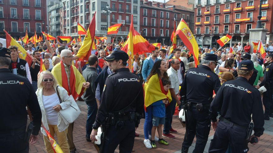 Manifestantes contra el referéndum del 1-O acosan a una concentración pro refugiados en Valladolid