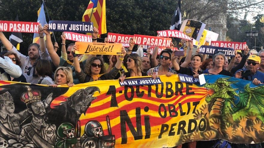 La manifestación se convocó hace algo más de un mes en el marco de las movilizaciones contra el juicio del procés y que incluyeron una huelga general el pasado 21 de febrero. En el momento en el que se anunció, el Gobierno de Pedro Sánchez aún no había dado por rotas las negociaciones con la Generalitat –una decisión que finiquitó los Presupuestos y, con su fracaso, la legislatura–.