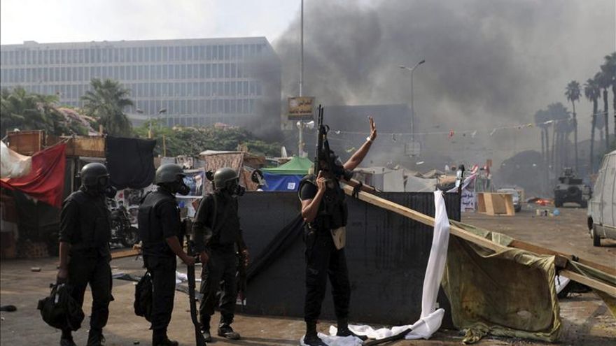 Según fuentes oficiales, al menos 278 personas han fallecido este miércoles en Egipto durante los incidentes registrados tras el violento desalojo de las acampadas de los Hermanos Musulmanes en El Cairo. Entre las víctimas figuran 47 policías. Tras varios días de avisos, la policía egipcia ha accedido a primera hora de la mañana con gran violencia a los campamentos de los partidarios de Morsi instalados tras el golpe de estado en las plazas de Rabea al Adauiya y del Nahda.