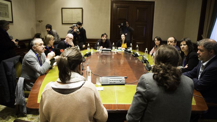 El secretario general de Podemos, acompañado de Alberto Garzón, Noelia Vera, Rafa Mayoral y Yolanda Díaz, también se verá con los principales sindicatos del país este mismo lunes 24 por la tarde en el Congreso de los Diputados y a la cita acudirán los líderes de CCOO y UGT, Unai Sordo y Pepe Álvarez.