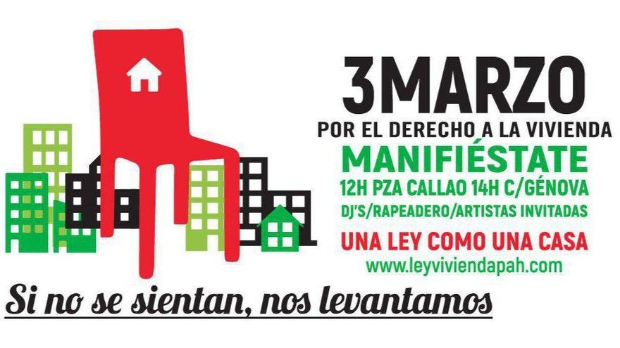 Madrid vuelve a ser el epicentro de las protestas sociales. Si la semana pasada fueron los jubilados los que se manifestaron ante el Congreso para reclamar una subida de las pensiones acordes con el IPC, el próximo sábado, 3 de marzo, serán los colectivos de vivienda los que saldrán a la calle para reclamar una ley digna que el PP y el Gobierno se niegan a apoyar en el Congreso.